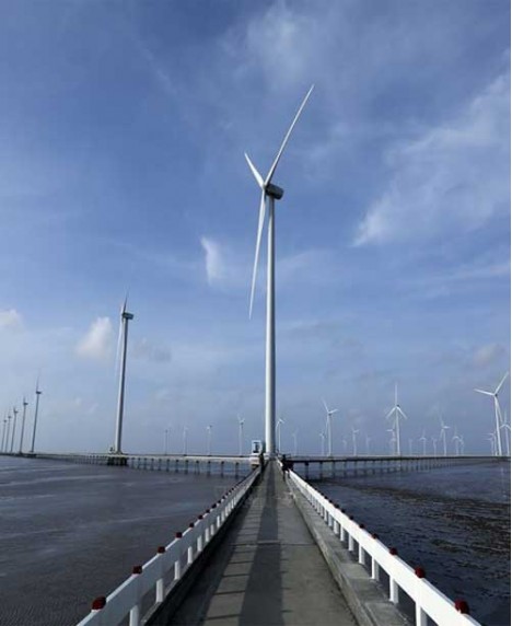 Tiếp tục tham quan bên ngoài nhà máy phong điện Bạc Liêu, với 62 cột tháp và turbin điện gió đặt trên biển, mỗi cột cao 80m, đường kính 4m, nặng 200 tấn được lắp cánh quạt dài 42m.